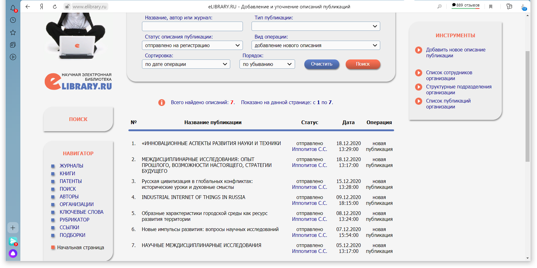 Материалы на сайте Elibrary