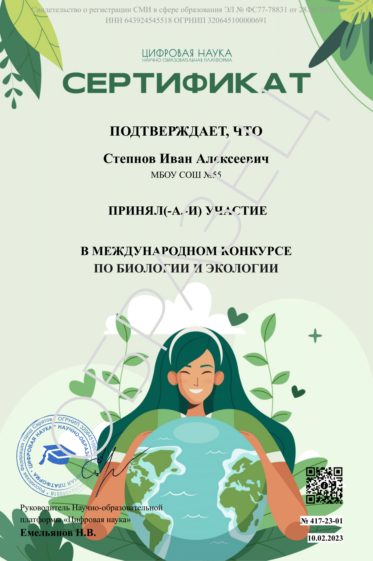 Сведения о регистрации СМИ Эл № ФС 77 - 78831 от 28.08.2020