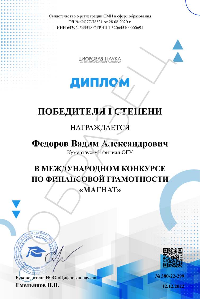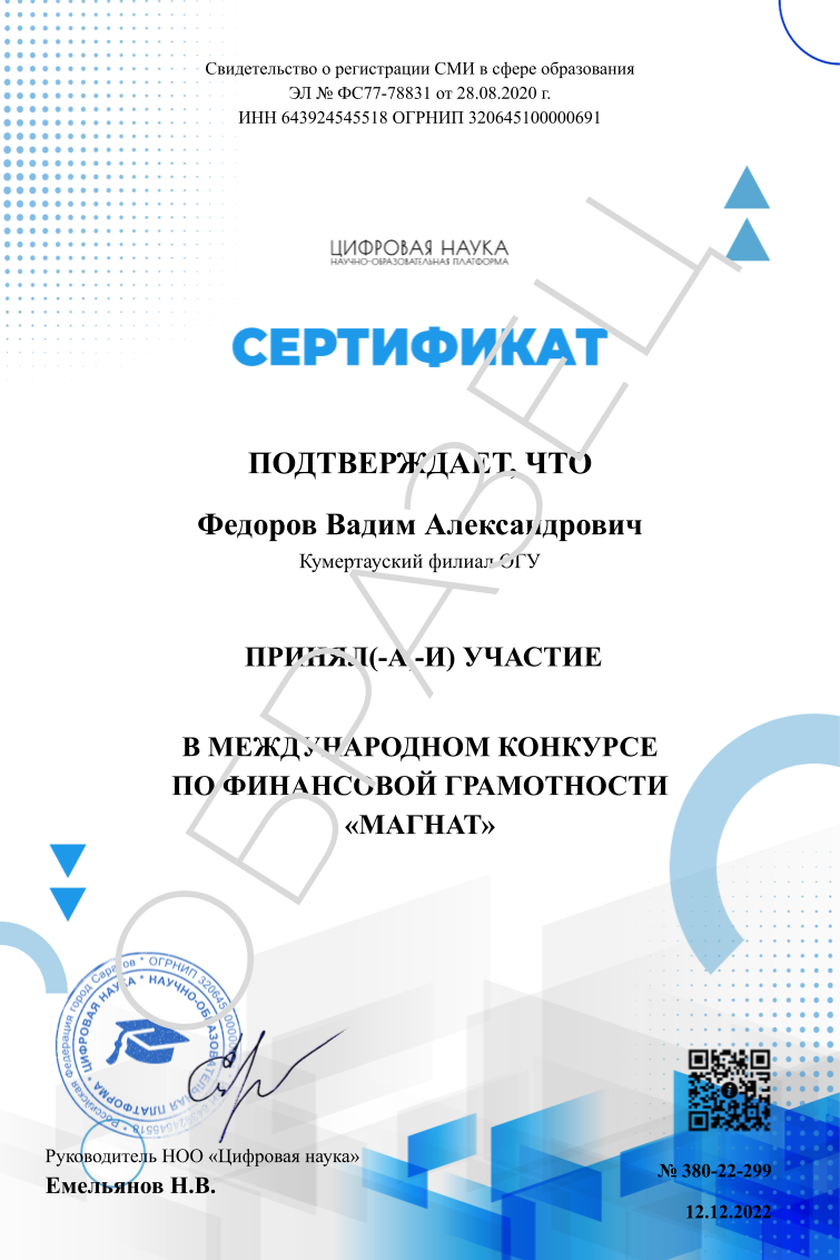 Образцы сертификата и диплома