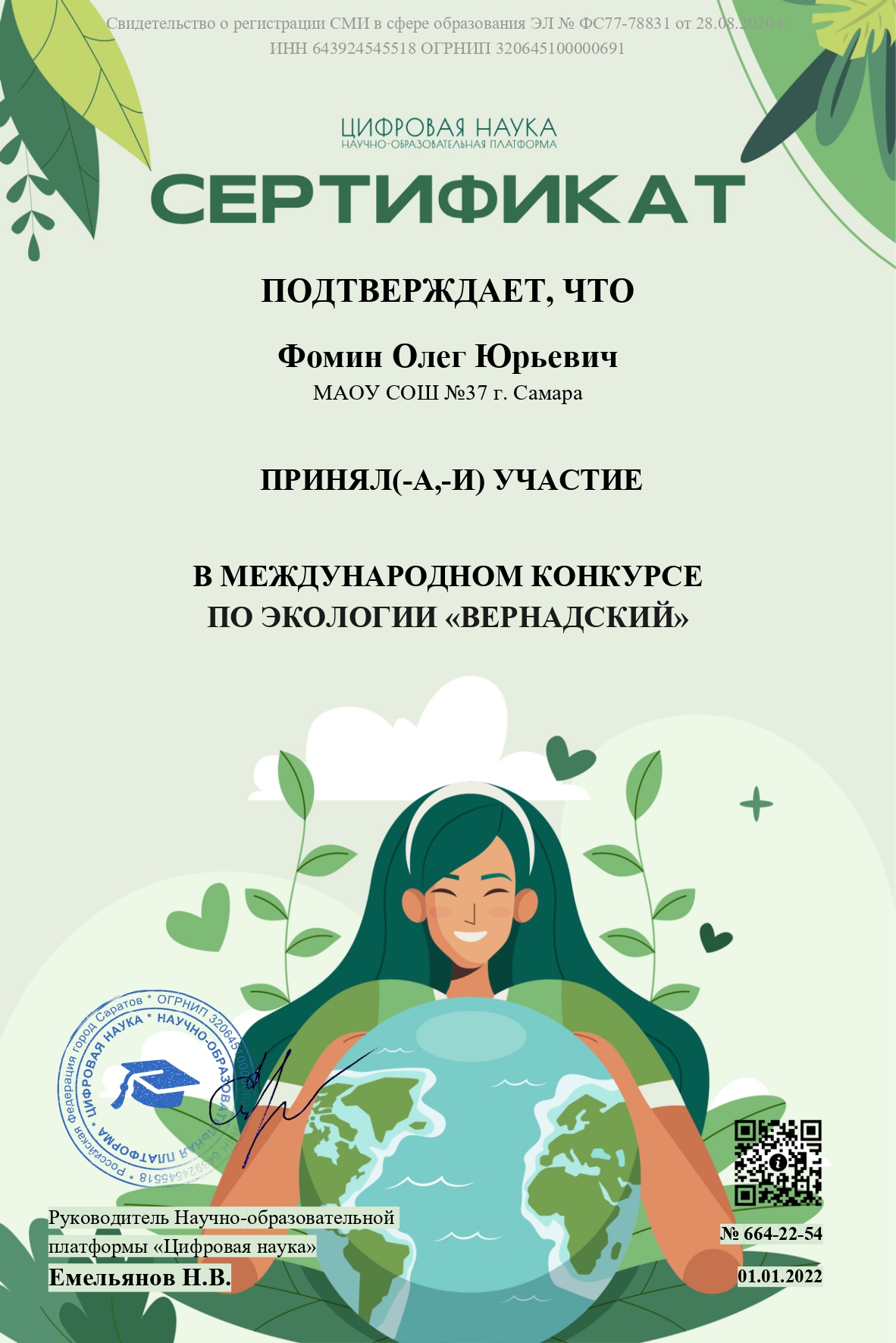 Сведения о регистрации СМИ Эл № ФС 77 - 78831 от 28.08.2020